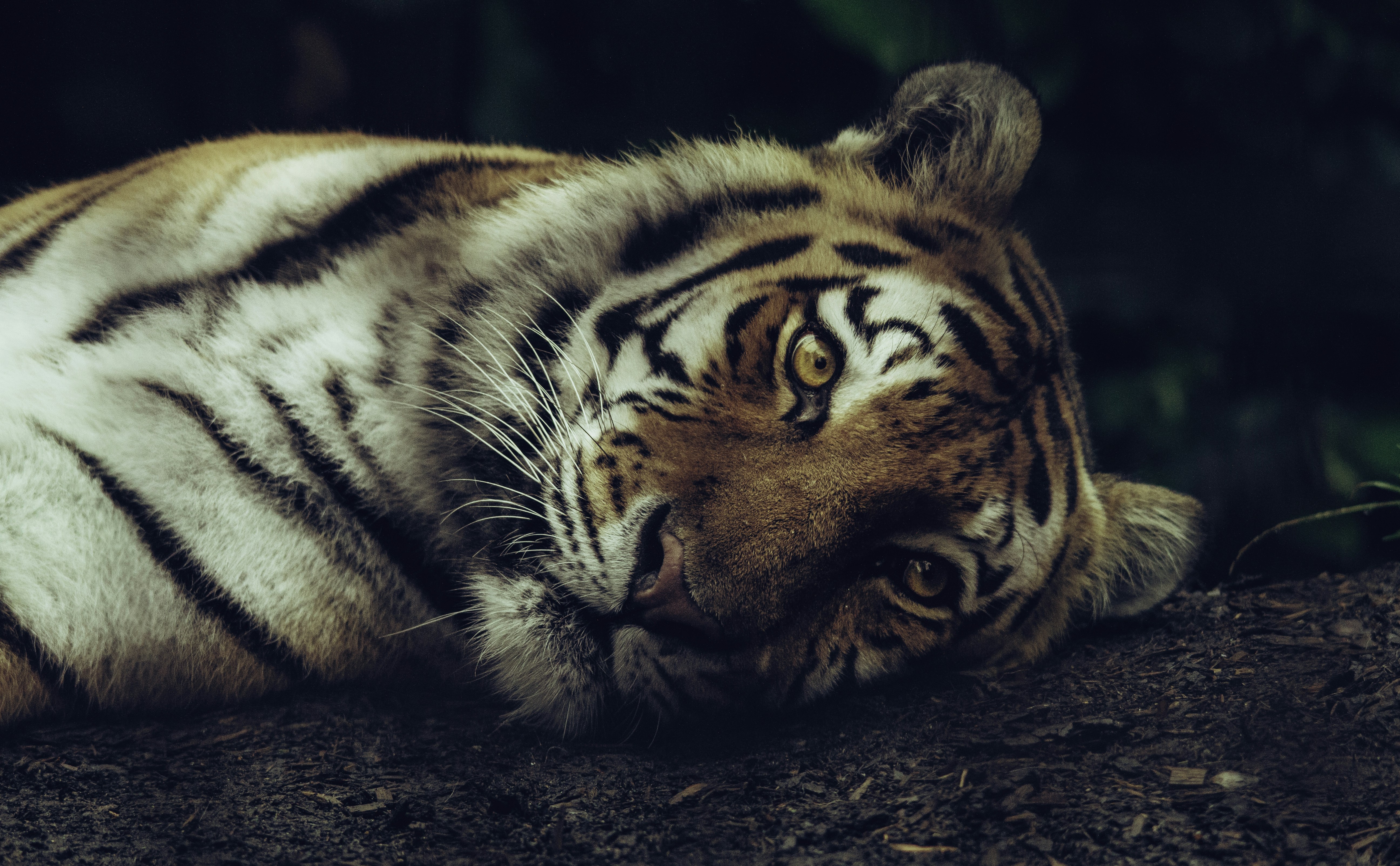 Beautiful Tiger Sleeping In Jungle Hd Desktop Background Wallpaper