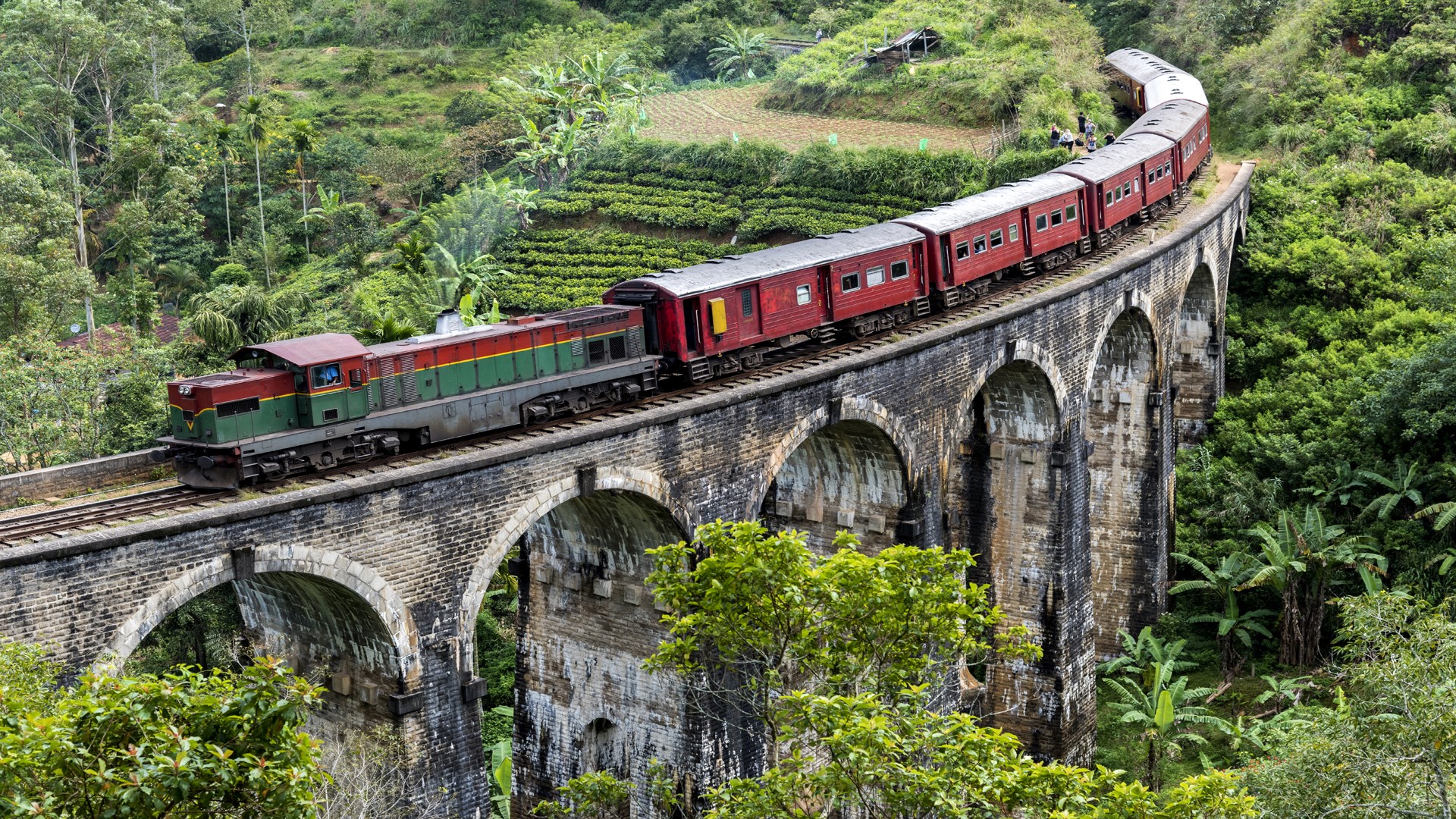 A Train Crossing The Nine Arches Bridge Badulla Railway Uva