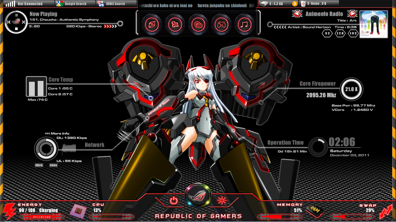 Custom Asus R O G Windows 7 Theme With Animated Wallpaper